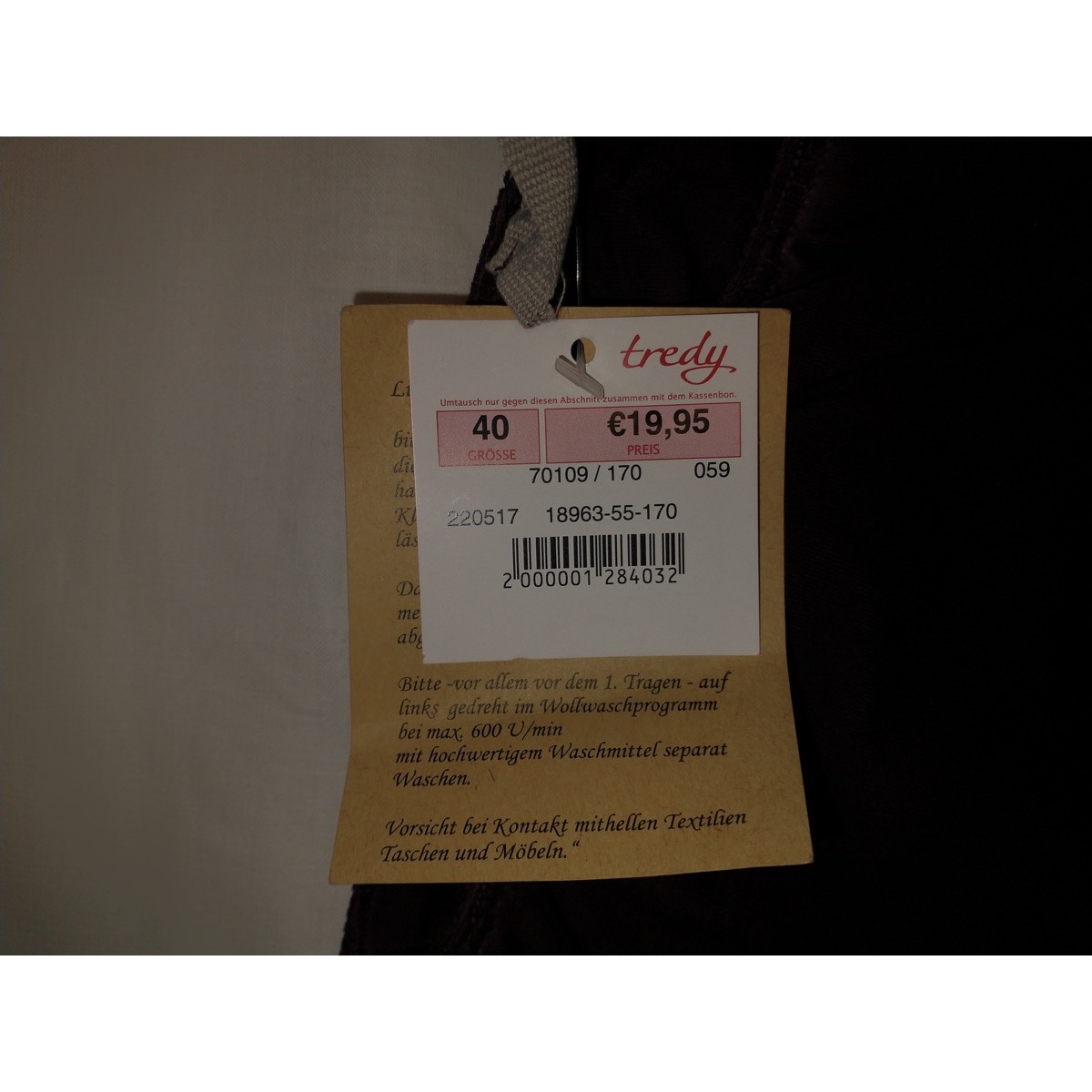 Maße: Bundweite einfach 33cm; Außenbeinlänge 77cm